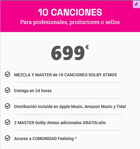 Mezcla y Mastering de 10 canciones por Dolby en formato Dolby Atmos.